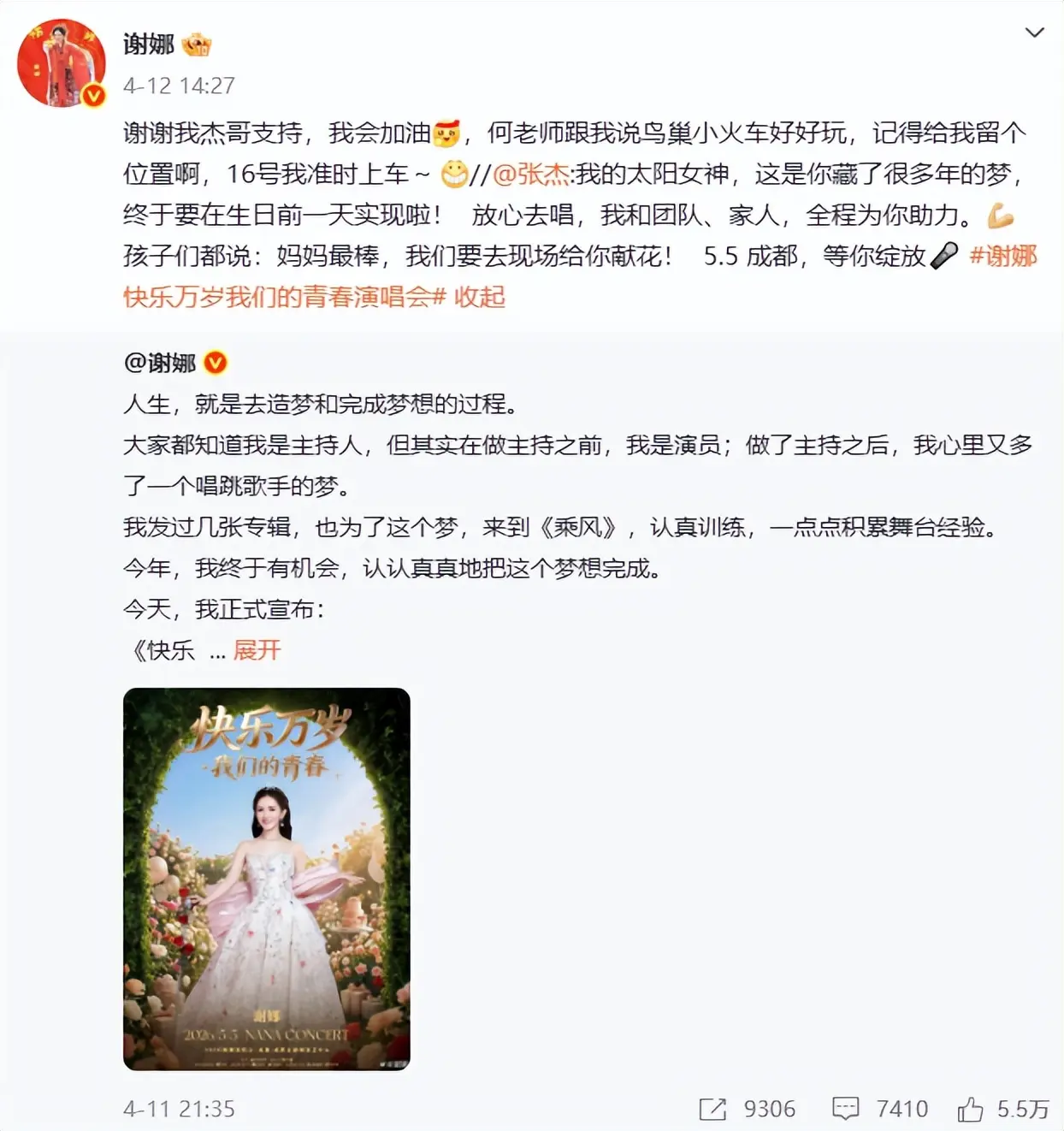 在官宣“小作文”中,她还表示:“人生,就是去造梦和完成梦想的过程。大家都知道我是主持人,但其实在做主持之前,我是演员;做了主持之后,我心里又多了一个唱跳歌手的梦。”