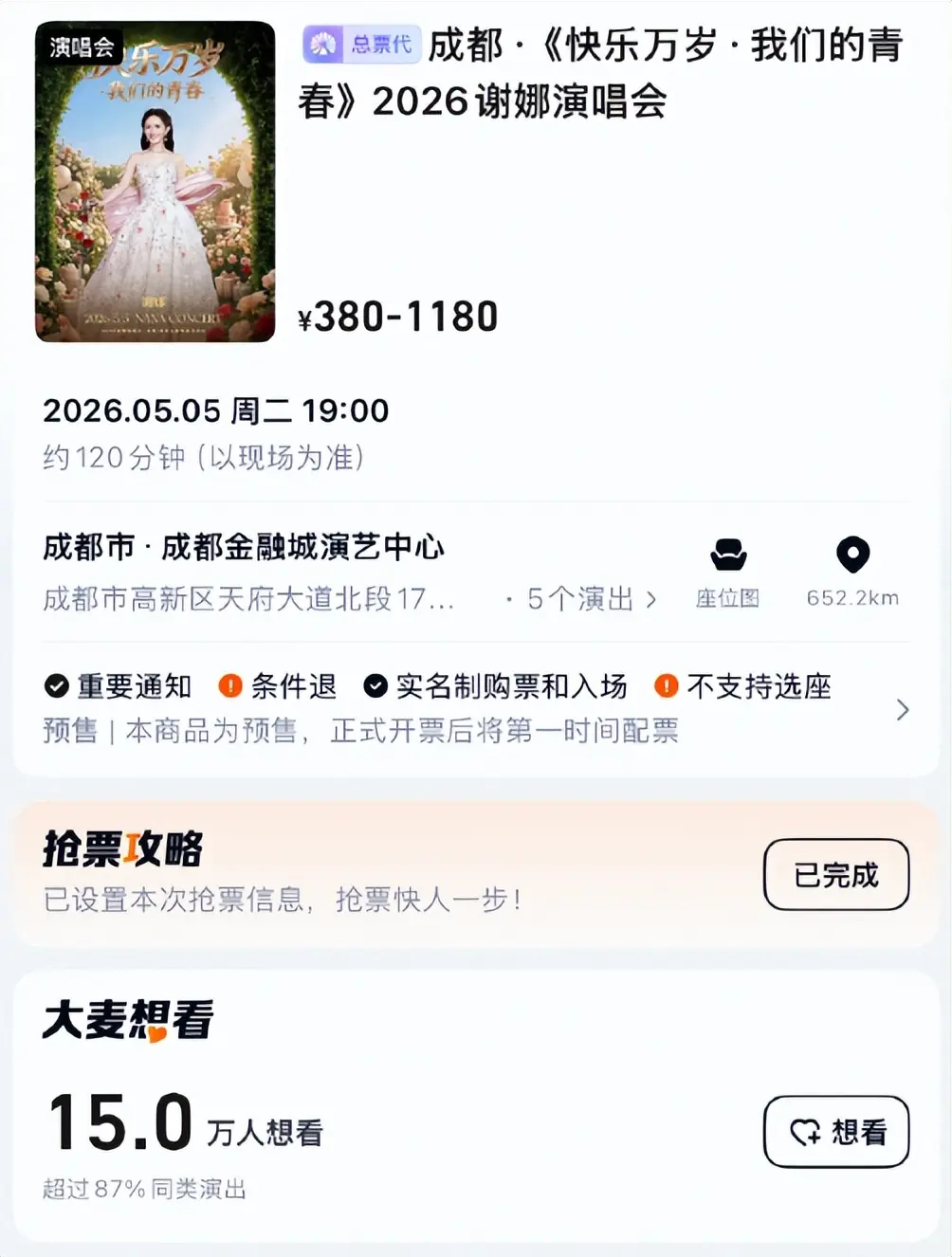 谢娜看到后也直呼从来没见过这种场面,她自己都抢不到门票,开售前页面就显示15万人预约,确实够火爆。